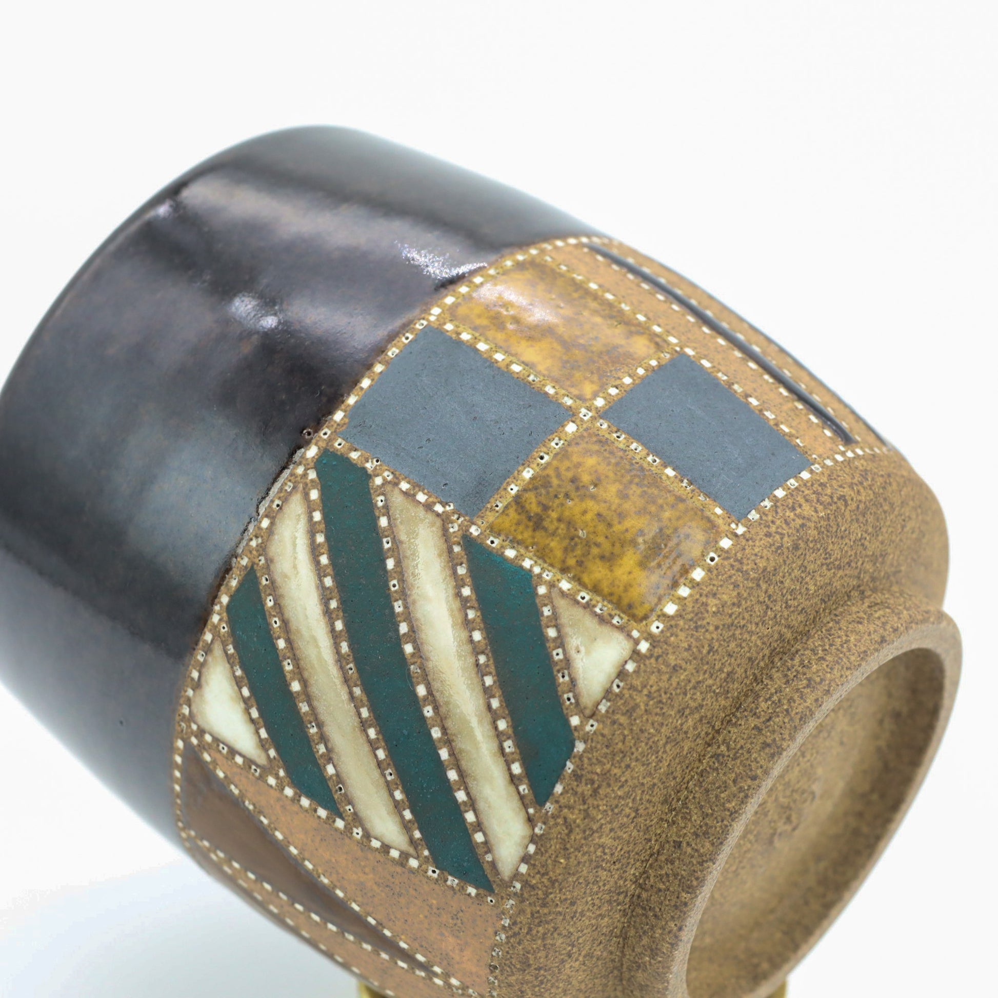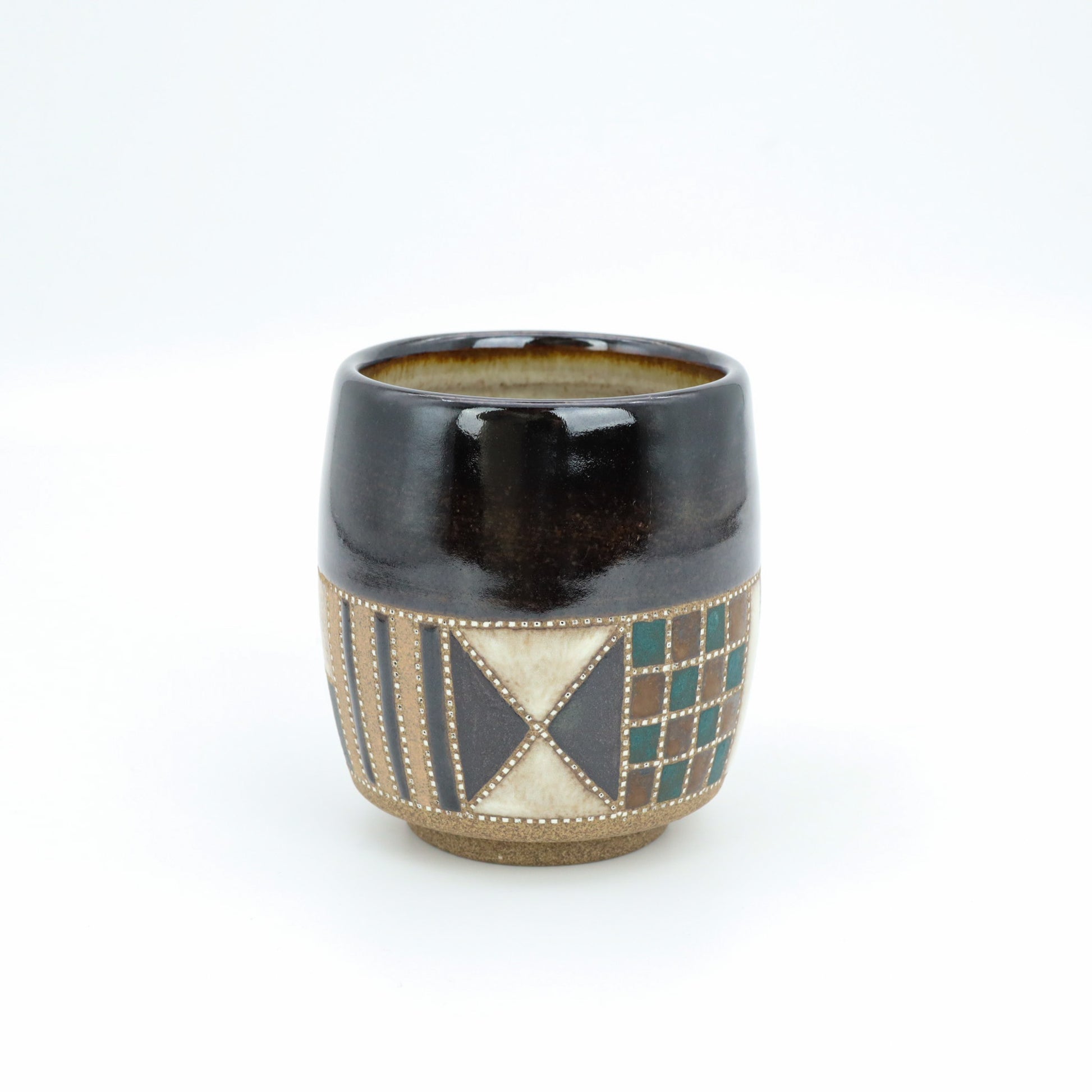 [Mukaiyama Fumiya] Inlaid glaze colored border design teacup black