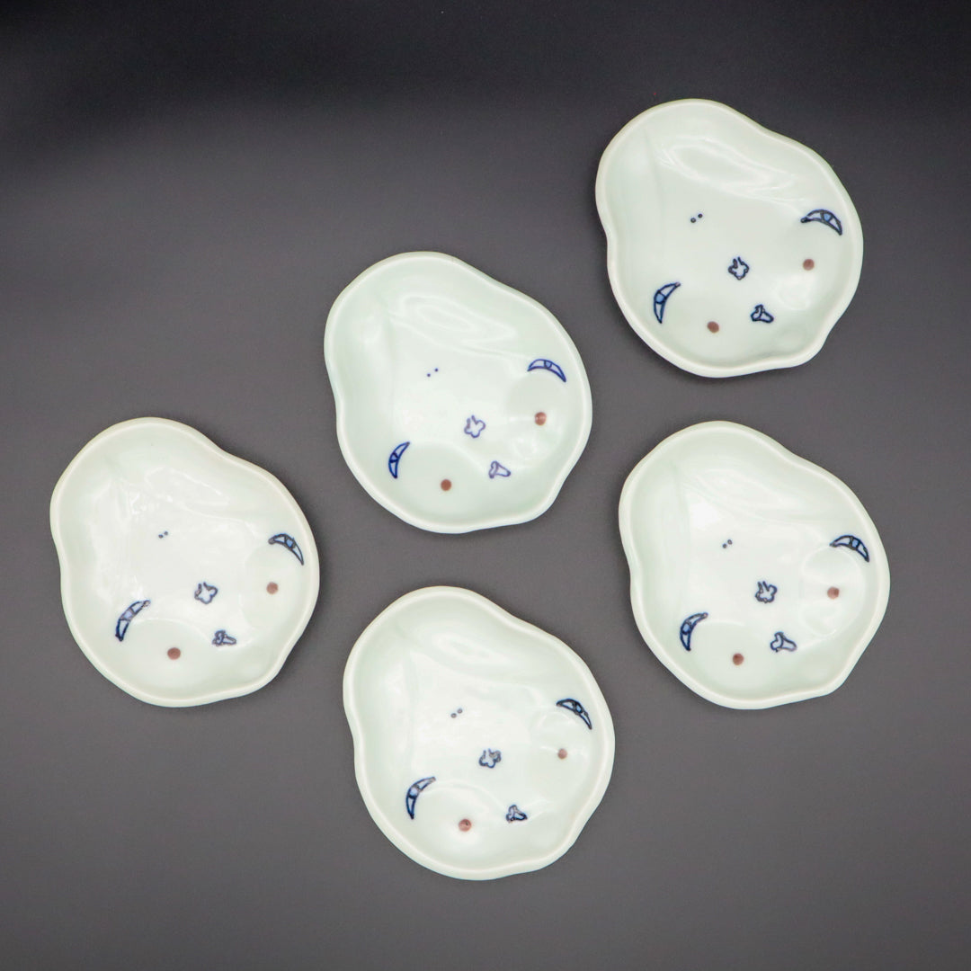 [Omura Midori] Blue and white rice cracker dish set with Okame design