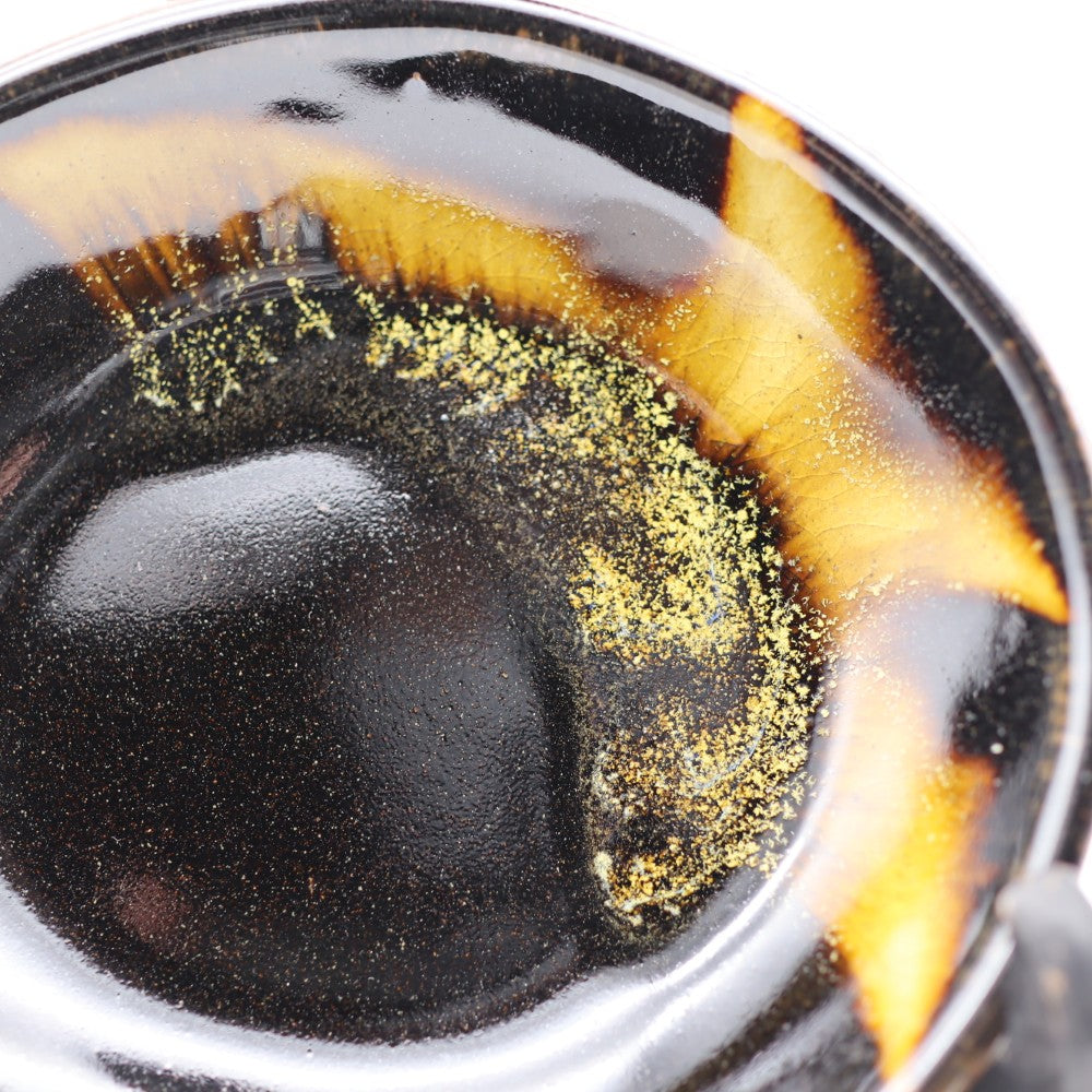 萩原さんの黒釉は、益子で採掘される芦沼石を原料としており、釉薬が薄くかかっている箇所は同じ芦沼石から作られる柿釉のような茶色に発色します。
