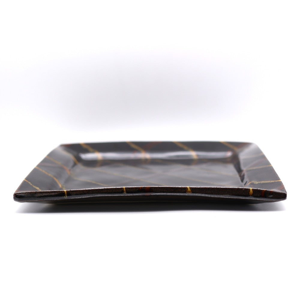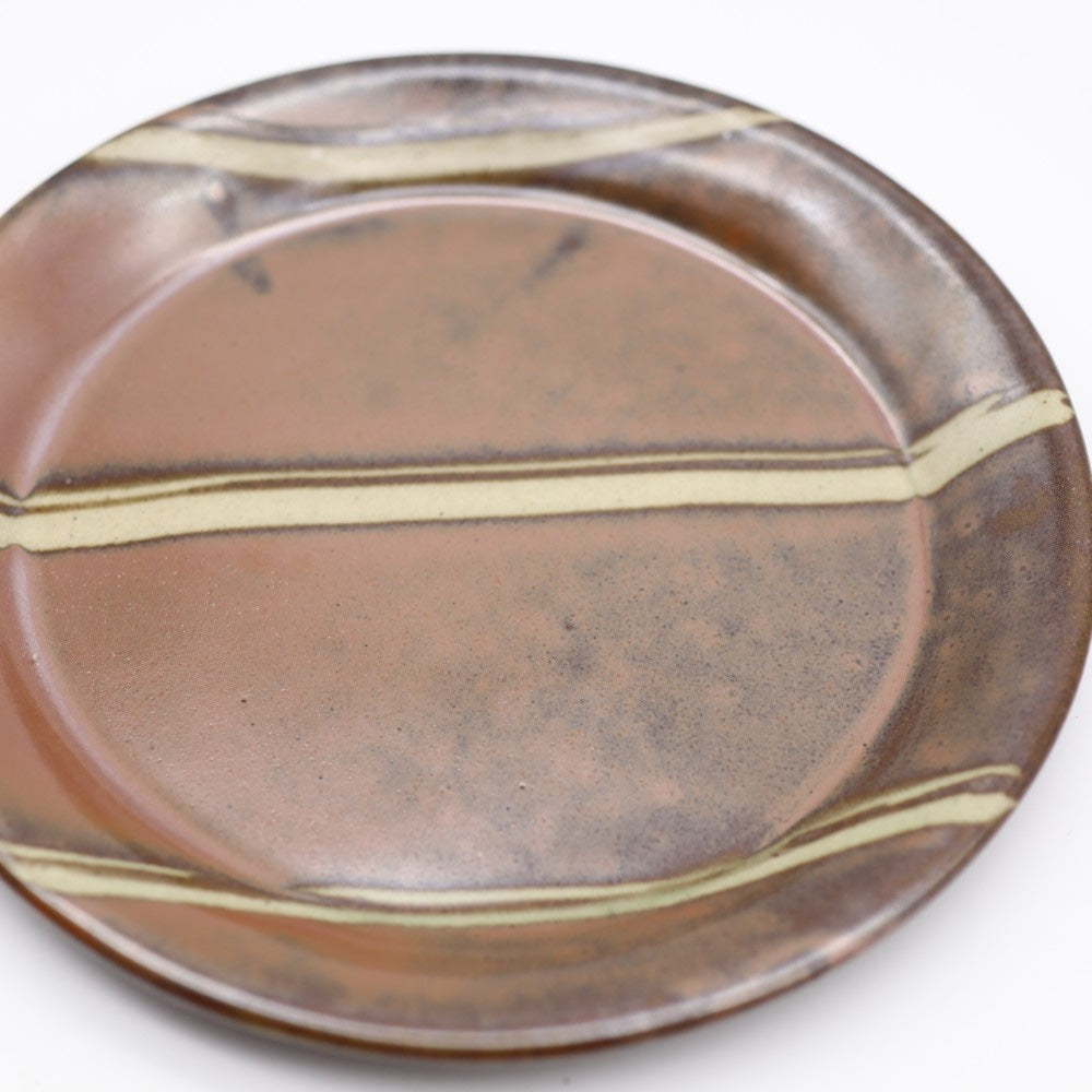 柿釉は益子原産の石である芦沼石から作られており、焼成温度によって、黒っぽく色にムラができることがございます。
